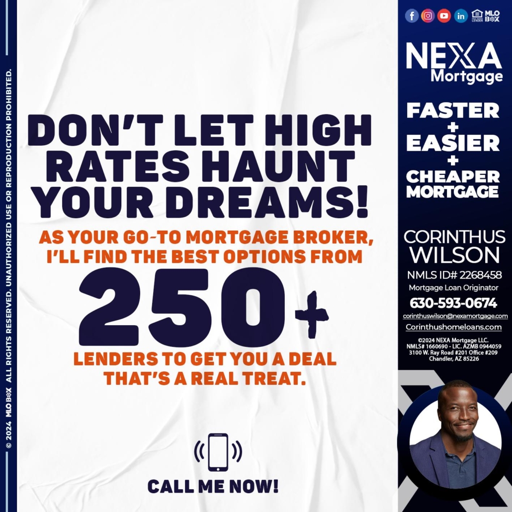 250 + LENDERS - Corinthus Wilson -Mortgage Loan OriginatorHi, my name is Corinthus Wilson. I’m a Loan Officer with NEXA Mortgage LLC., offering personalized mortgage solutions, fast customized quotes, great rates and service with integrity.