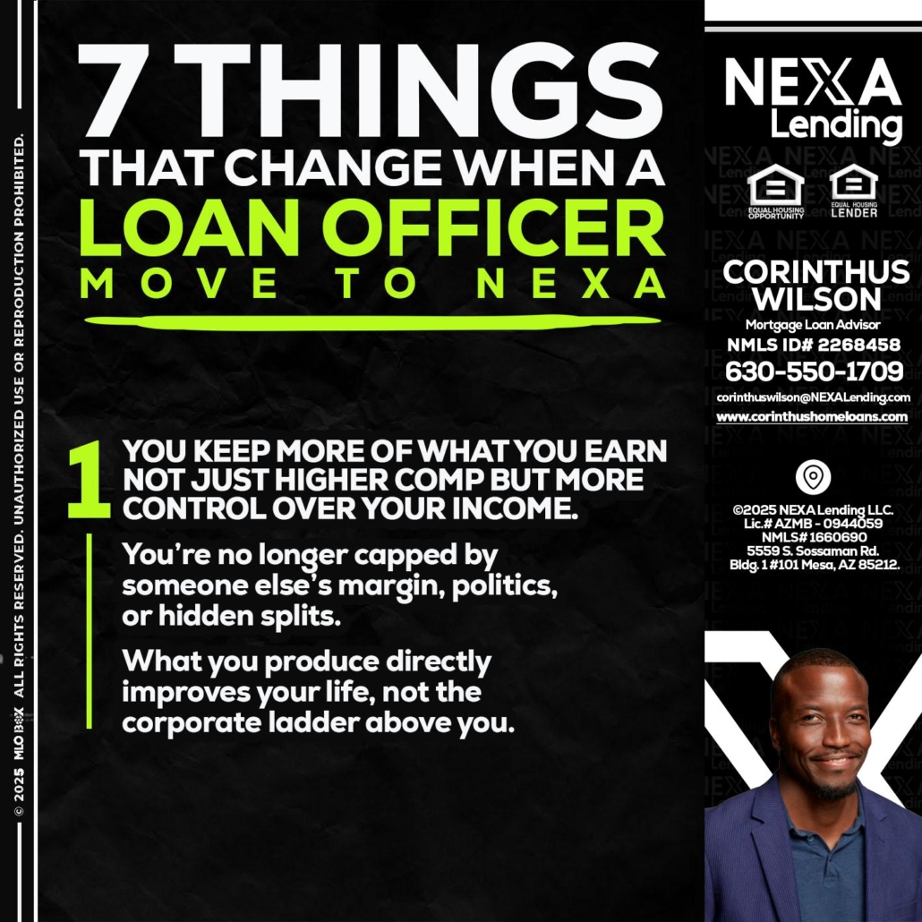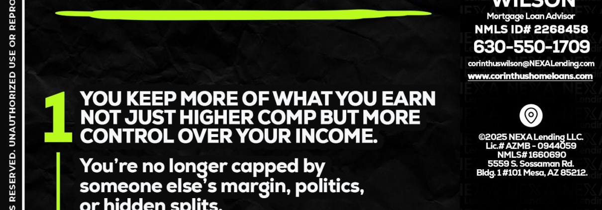 7 THINGS (1) - Corinthus Wilson -Loan Advisor/Investor/Commercial/InternationalHi, my name is Corinthus Wilson. I’m a Loan Officer with NEXA Lending LLC., offering personalized mortgage solutions, fast customized quotes, great rates and service with integrity.