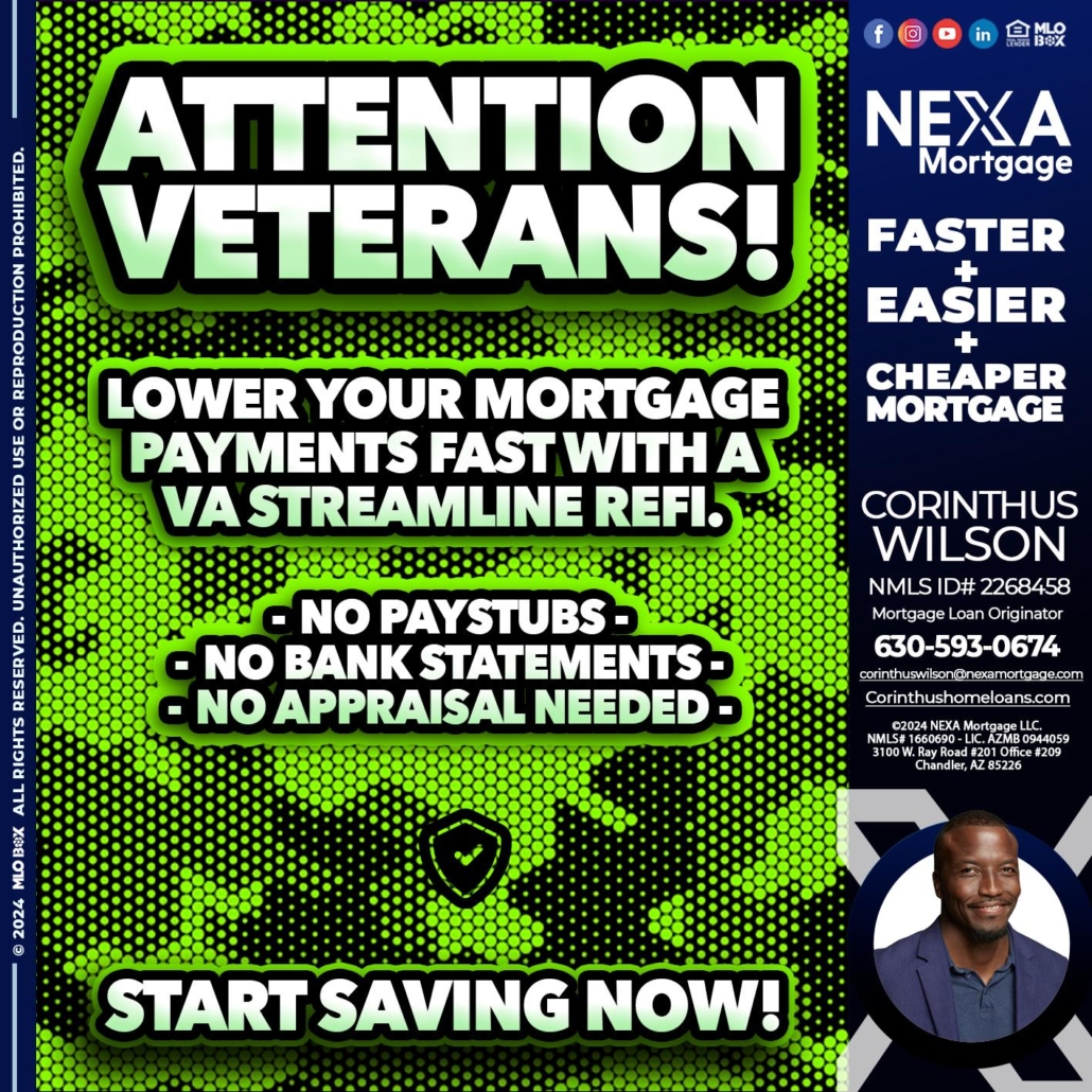 Hi, my name is Corinthus Wilson. I’m a Loan Officer with NEXA Mortgage LLC., offering personalized mortgage solutions, fast customized quotes, great rates and service with integrity.