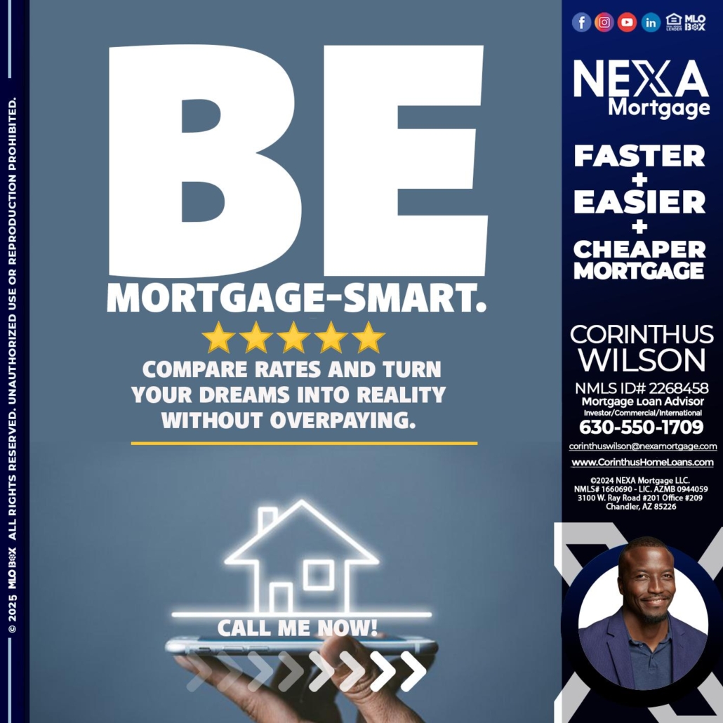 Hi, my name is Corinthus Wilson. I’m a Loan Officer with NEXA Mortgage LLC., offering personalized mortgage solutions, fast customized quotes, great rates and service with integrity.