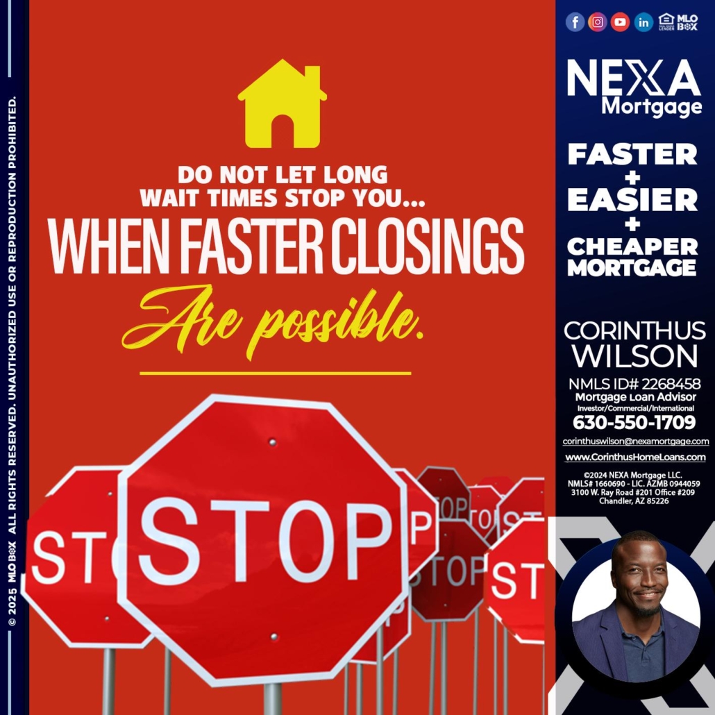Hi, my name is Corinthus Wilson. I’m a Loan Officer with NEXA Mortgage LLC., offering personalized mortgage solutions, fast customized quotes, great rates and service with integrity.