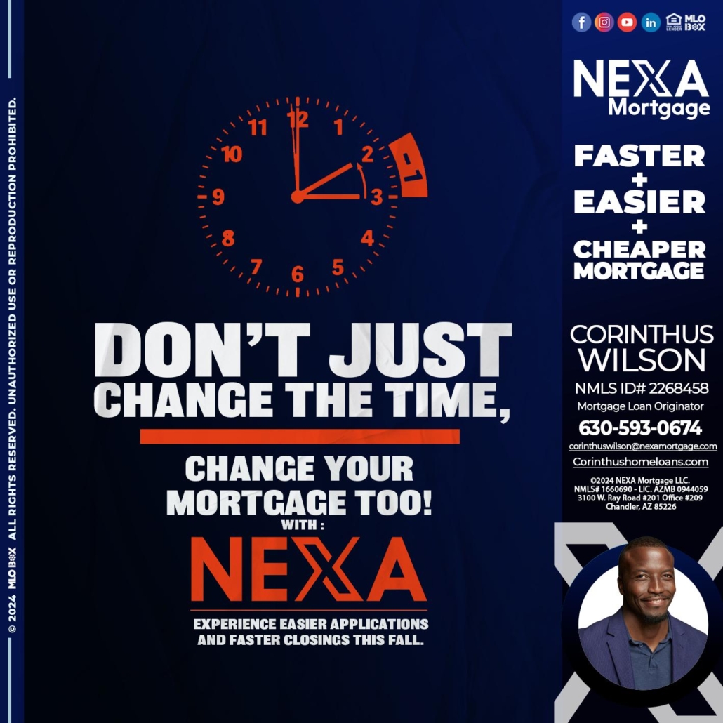 Hi, my name is Corinthus Wilson. I’m a Loan Officer with NEXA Mortgage LLC., offering personalized mortgage solutions, fast customized quotes, great rates and service with integrity.