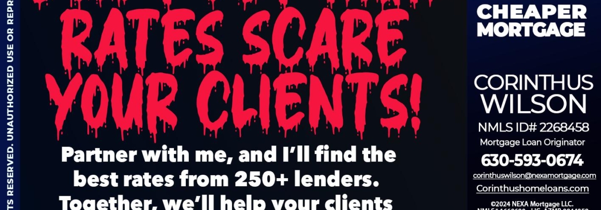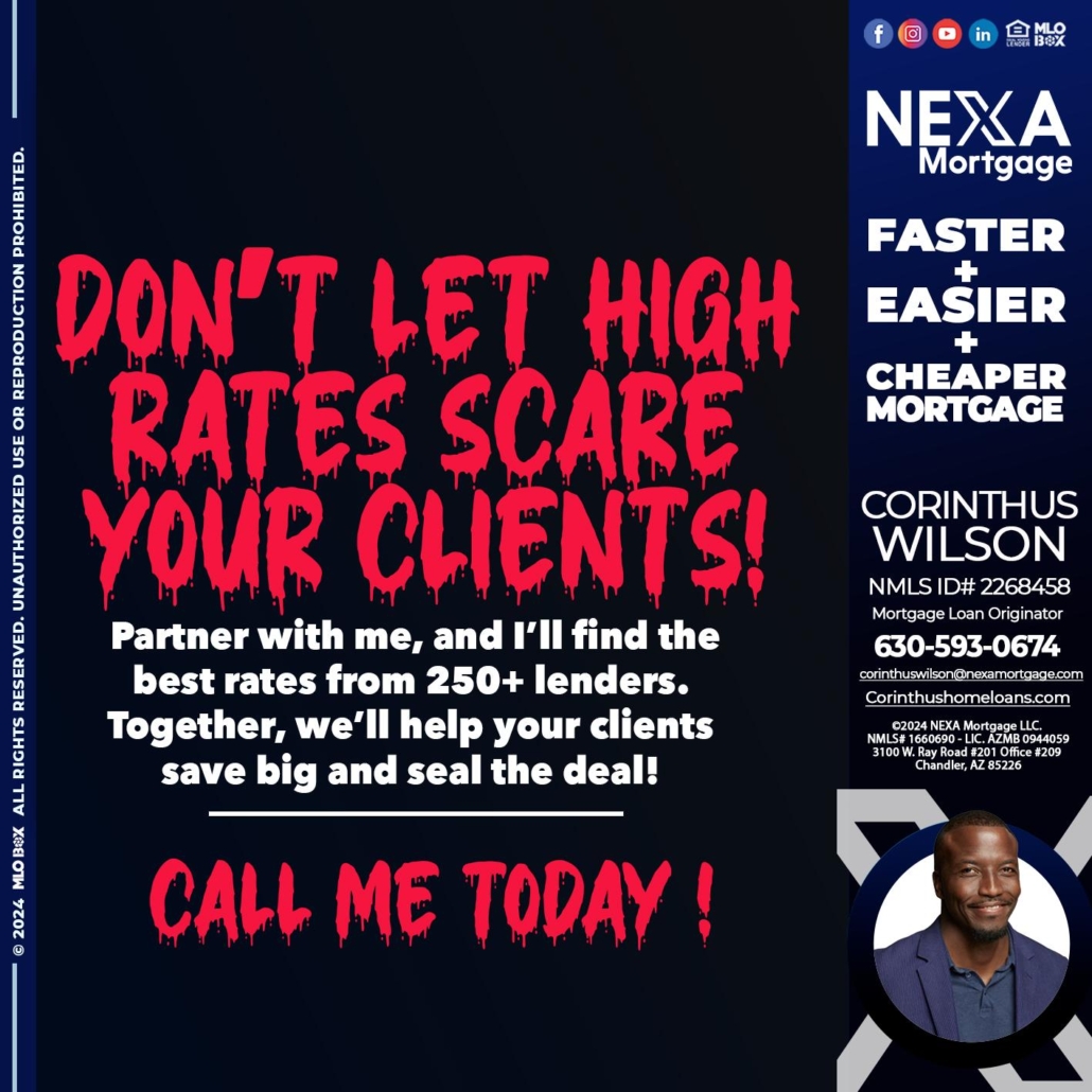 dont let high rates scare - Corinthus Wilson -Mortgage Loan OriginatorHi, my name is Corinthus Wilson. I’m a Loan Officer with NEXA Mortgage LLC., offering personalized mortgage solutions, fast customized quotes, great rates and service with integrity.