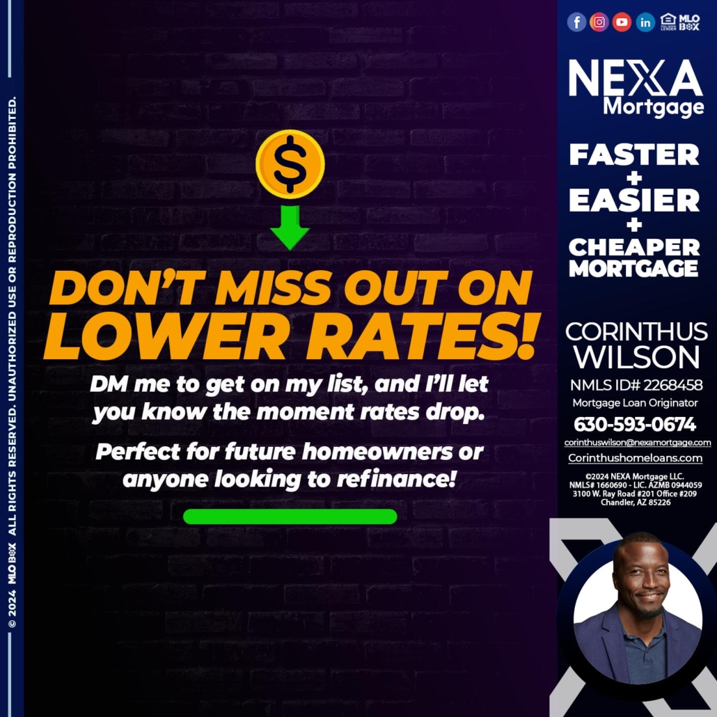 Hi, my name is Corinthus Wilson. I’m a Loan Officer with NEXA Mortgage LLC., offering personalized mortgage solutions, fast customized quotes, great rates and service with integrity.