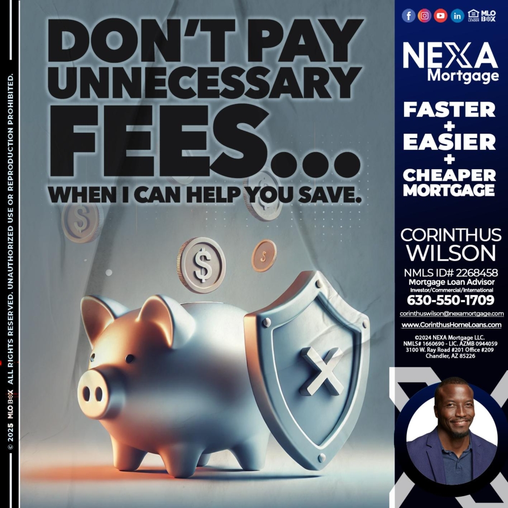 DON´T PAY UNNECESARY FEES... - Corinthus Wilson -Mortgage Loan OriginatorHi, my name is Corinthus Wilson. I’m a Loan Officer with NEXA Mortgage LLC., offering personalized mortgage solutions, fast customized quotes, great rates and service with integrity.