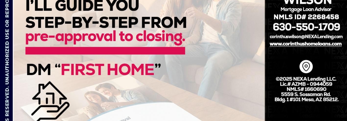 Hi, my name is Corinthus Wilson. I’m a Loan Officer with NEXA Lending LLC., offering personalized mortgage solutions, fast customized quotes, great rates and service with integrity.
