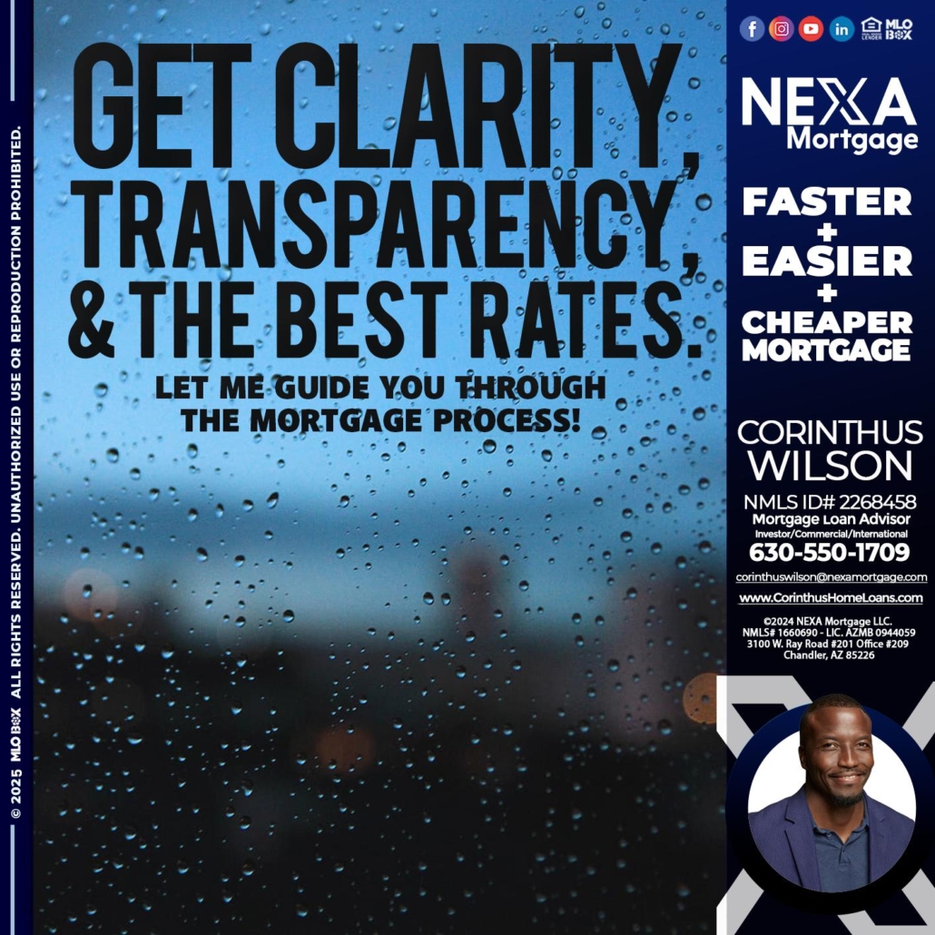 Hi, my name is Corinthus Wilson. I’m a Loan Officer with NEXA Mortgage LLC., offering personalized mortgage solutions, fast customized quotes, great rates and service with integrity.