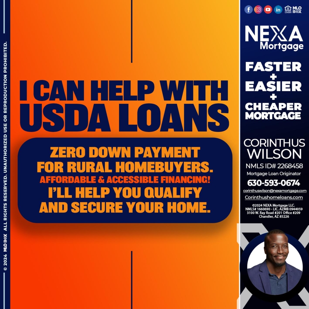 Hi, my name is Corinthus Wilson. I’m a Loan Officer with NEXA Mortgage LLC., offering personalized mortgage solutions, fast customized quotes, great rates and service with integrity.
