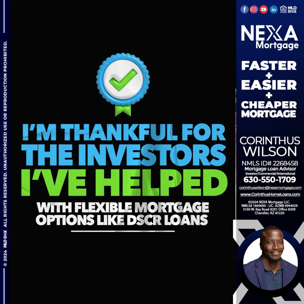 Hi, my name is Corinthus Wilson. I’m a Loan Officer with NEXA Mortgage LLC., offering personalized mortgage solutions, fast customized quotes, great rates and service with integrity.