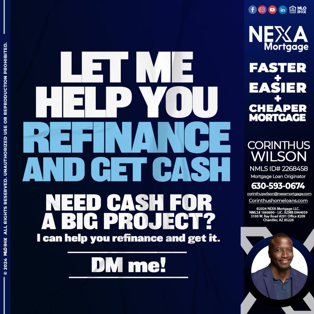 Hi, my name is Corinthus Wilson. I’m a Loan Officer with NEXA Mortgage LLC., offering personalized mortgage solutions, fast customized quotes, great rates and service with integrity.
