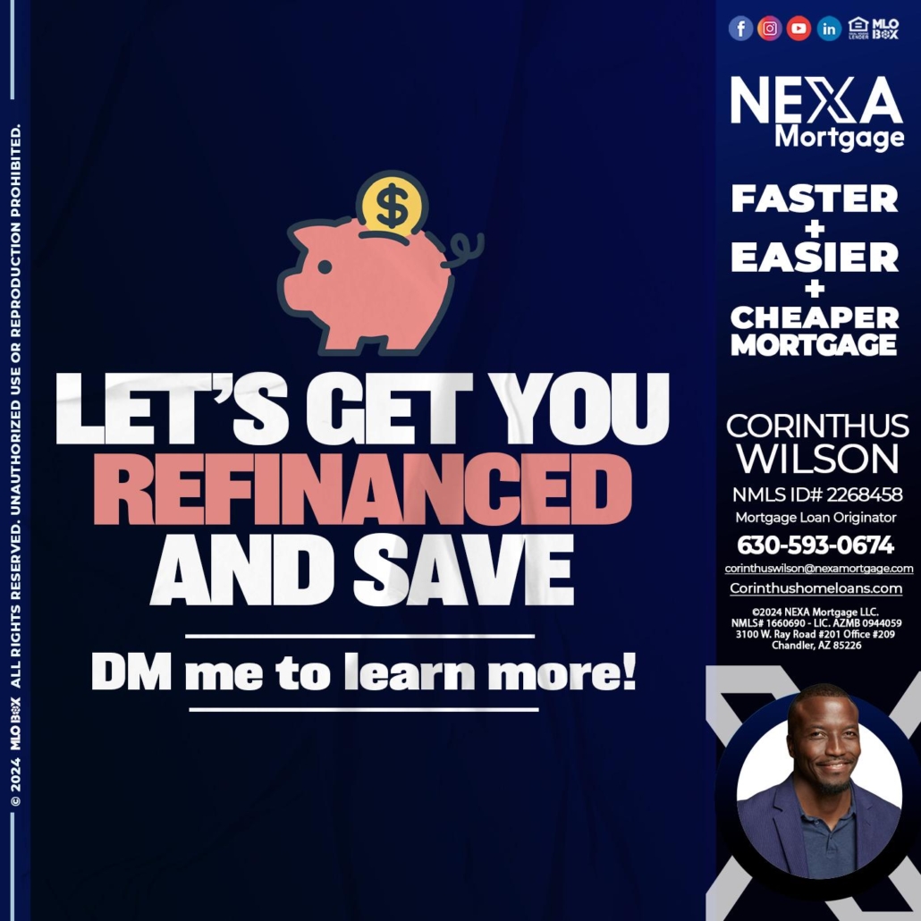 Hi, my name is Corinthus Wilson. I’m a Loan Officer with NEXA Mortgage LLC., offering personalized mortgage solutions, fast customized quotes, great rates and service with integrity.