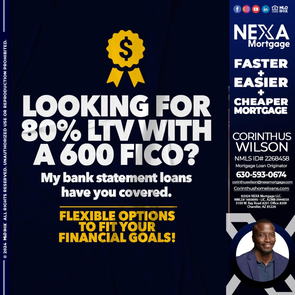 Hi, my name is Corinthus Wilson. I’m a Loan Officer with NEXA Mortgage LLC., offering personalized mortgage solutions, fast customized quotes, great rates and service with integrity.