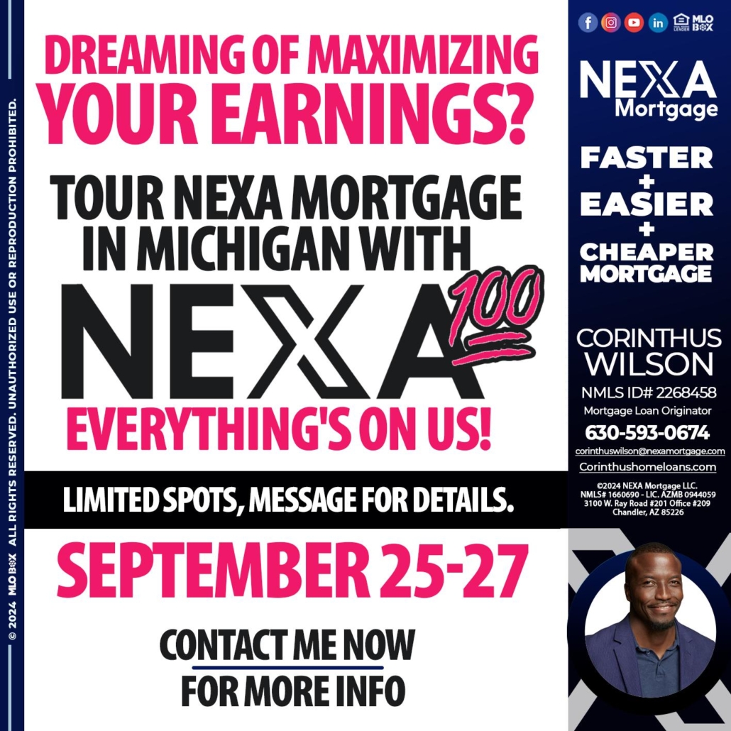 Hi, my name is Corinthus Wilson. I’m a Loan Officer with NEXA Mortgage LLC., offering personalized mortgage solutions, fast customized quotes, great rates and service with integrity.