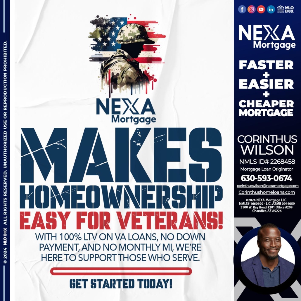 Hi, my name is Corinthus Wilson. I’m a Loan Officer with NEXA Mortgage LLC., offering personalized mortgage solutions, fast customized quotes, great rates and service with integrity.