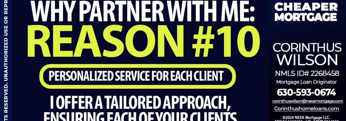 Hi, my name is Corinthus Wilson. I’m a Loan Officer with NEXA Mortgage LLC., offering personalized mortgage solutions, fast customized quotes, great rates and service with integrity.