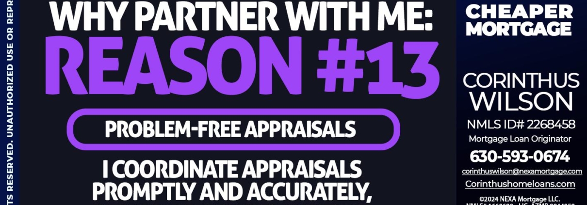 Hi, my name is Corinthus Wilson. I’m a Loan Officer with NEXA Mortgage LLC., offering personalized mortgage solutions, fast customized quotes, great rates and service with integrity.