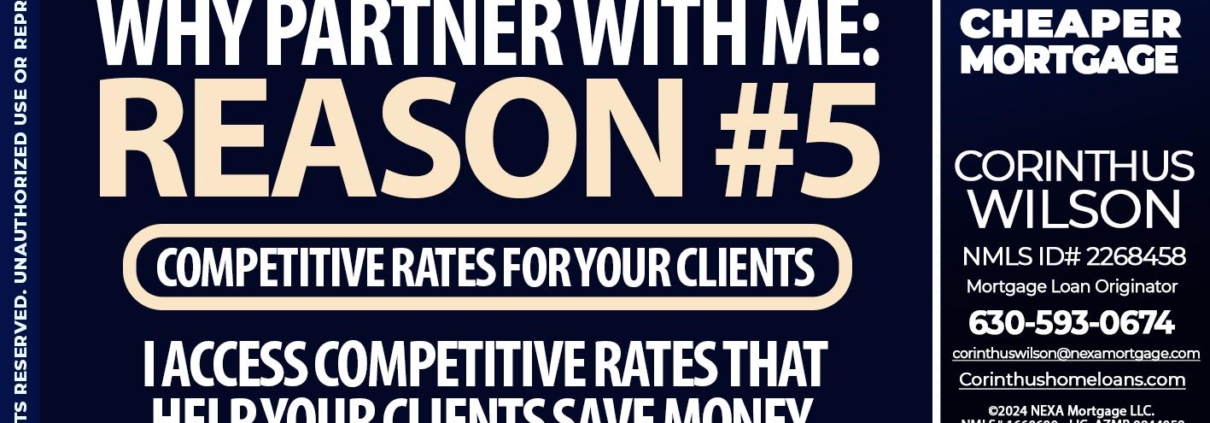 R5 - Corinthus Wilson -Mortgage Loan OriginatorHi, my name is Corinthus Wilson. I’m a Loan Officer with NEXA Mortgage LLC., offering personalized mortgage solutions, fast customized quotes, great rates and service with integrity.