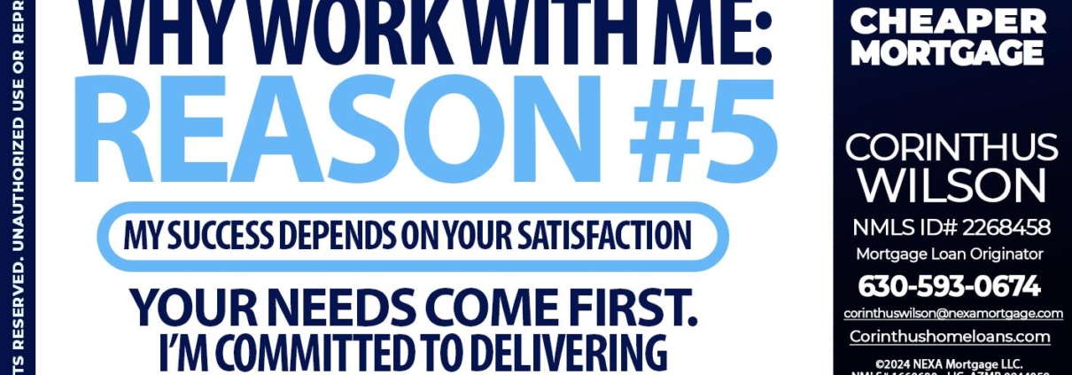 Hi, my name is Corinthus Wilson. I’m a Loan Officer with NEXA Mortgage LLC., offering personalized mortgage solutions, fast customized quotes, great rates and service with integrity.