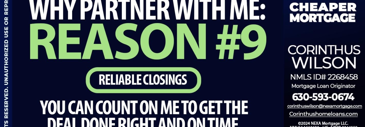 REASON 9 - Corinthus Wilson -Mortgage Loan OriginatorHi, my name is Corinthus Wilson. I’m a Loan Officer with NEXA Mortgage LLC., offering personalized mortgage solutions, fast customized quotes, great rates and service with integrity.