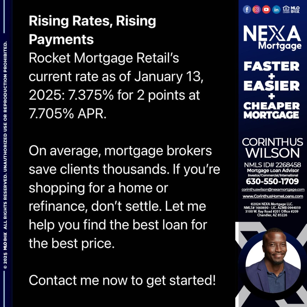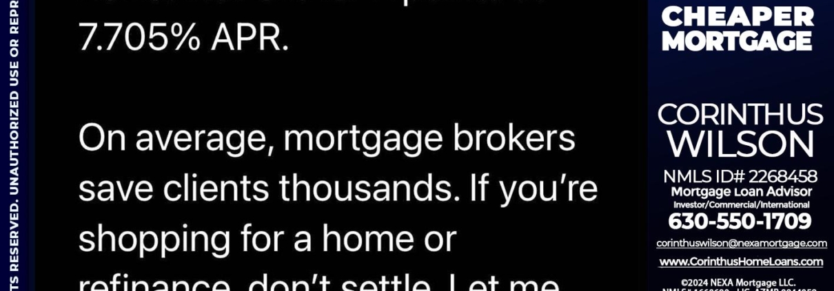 Hi, my name is Corinthus Wilson. I’m a Loan Officer with NEXA Mortgage LLC., offering personalized mortgage solutions, fast customized quotes, great rates and service with integrity.