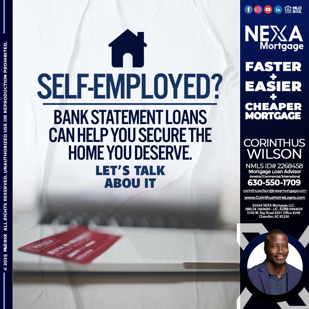 Hi, my name is Corinthus Wilson. I’m a Loan Officer with NEXA Mortgage LLC., offering personalized mortgage solutions, fast customized quotes, great rates and service with integrity.