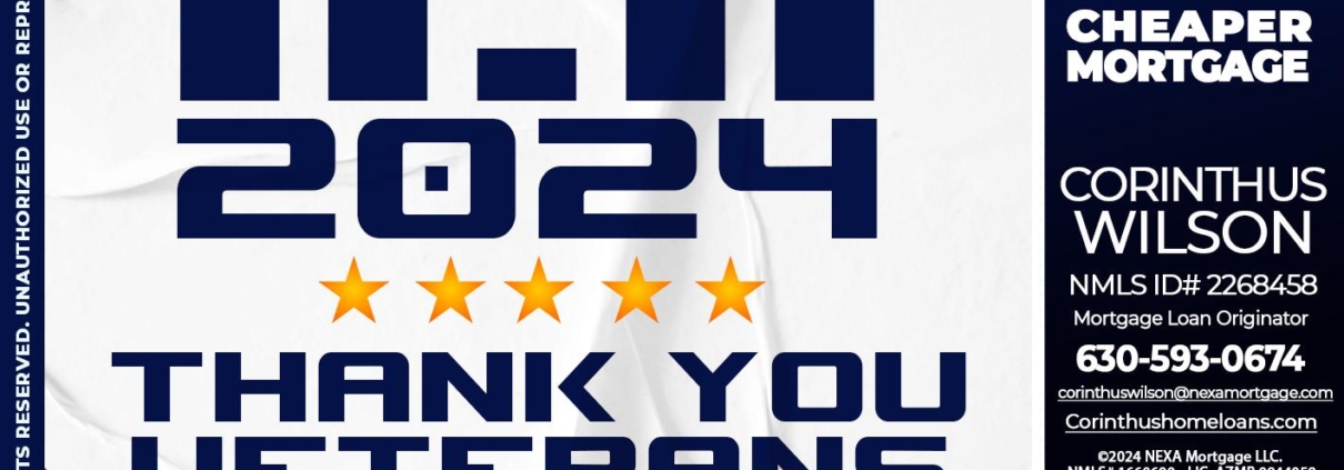 THANK YOU VETERANS - Corinthus Wilson -Mortgage Loan OriginatorHi, my name is Corinthus Wilson. I’m a Loan Officer with NEXA Mortgage LLC., offering personalized mortgage solutions, fast customized quotes, great rates and service with integrity.