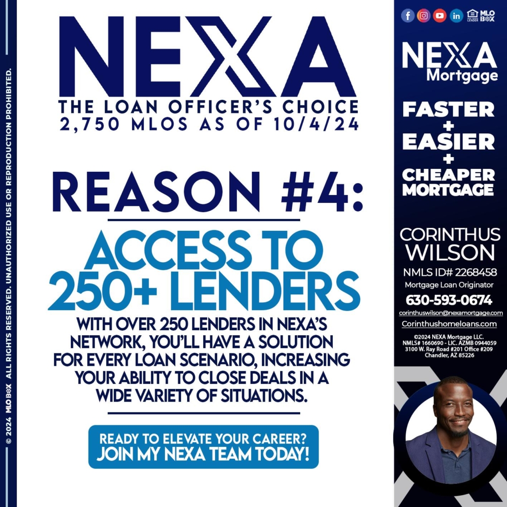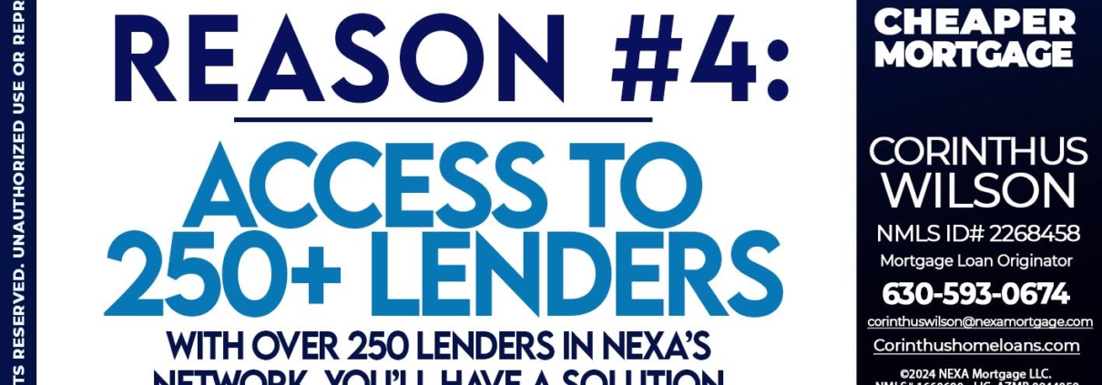 Hi, my name is Corinthus Wilson. I’m a Loan Officer with NEXA Mortgage LLC., offering personalized mortgage solutions, fast customized quotes, great rates and service with integrity.