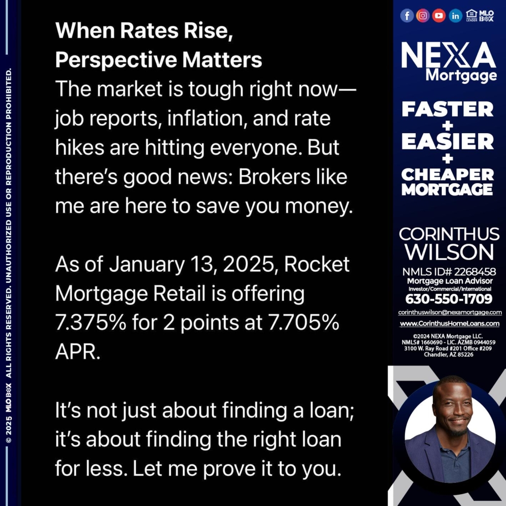 WHEN RATES RISE - Corinthus Wilson -Mortgage Loan OriginatorHi, my name is Corinthus Wilson. I’m a Loan Officer with NEXA Mortgage LLC., offering personalized mortgage solutions, fast customized quotes, great rates and service with integrity.