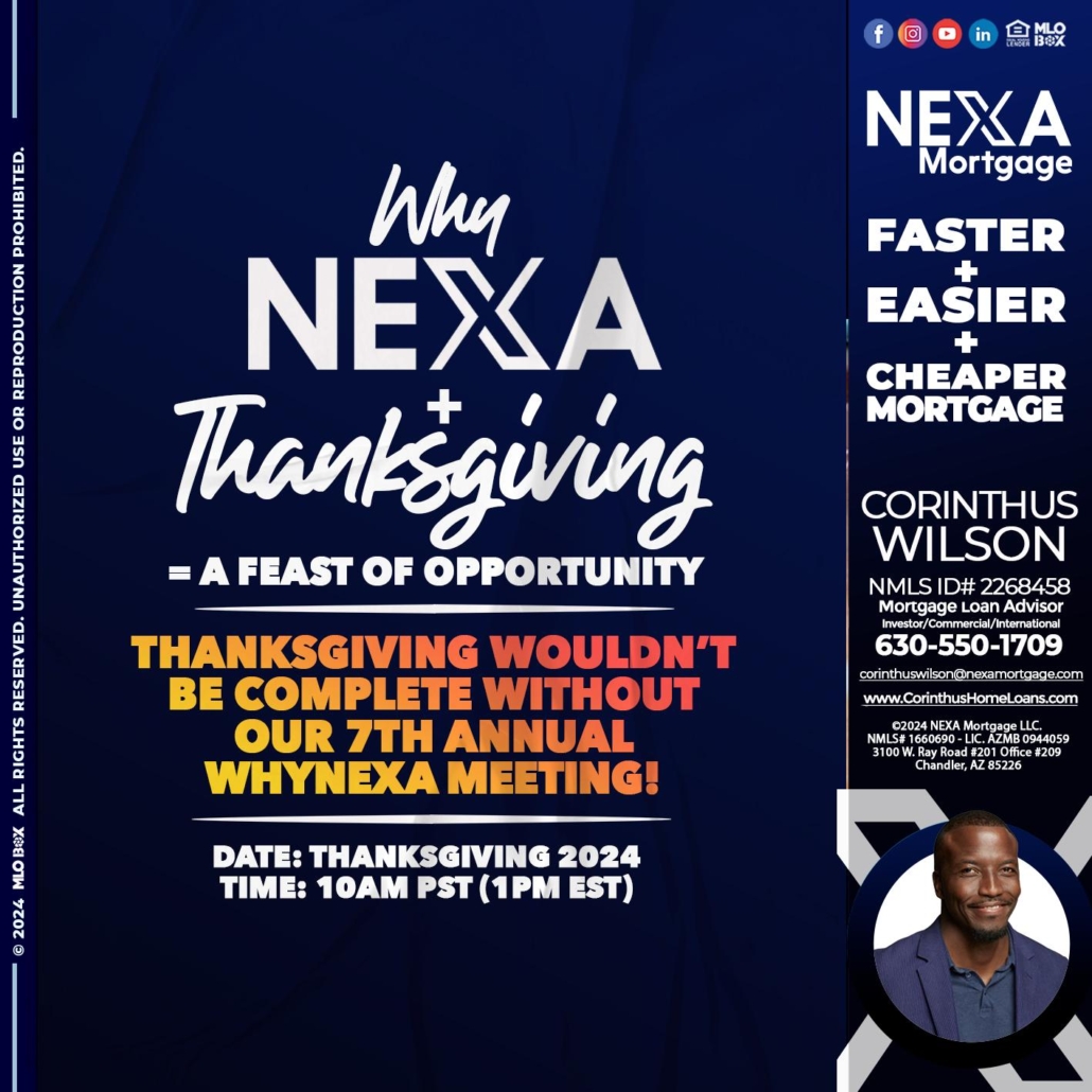 Hi, my name is Corinthus Wilson. I’m a Loan Officer with NEXA Mortgage LLC., offering personalized mortgage solutions, fast customized quotes, great rates and service with integrity.