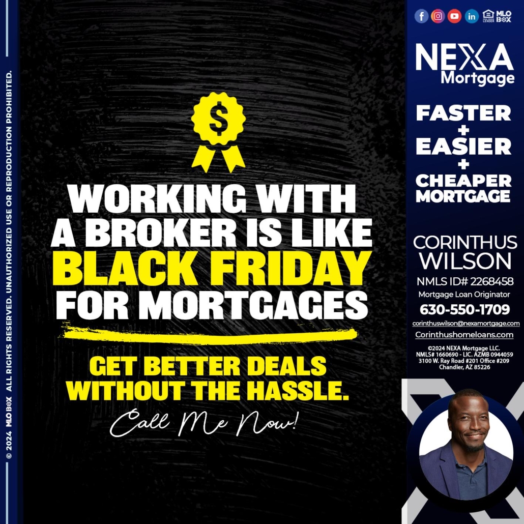 Hi, my name is Corinthus Wilson. I’m a Loan Officer with NEXA Mortgage LLC., offering personalized mortgage solutions, fast customized quotes, great rates and service with integrity.