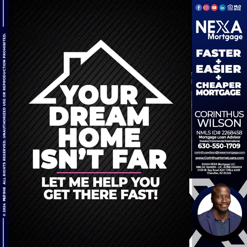 Hi, my name is Corinthus Wilson. I’m a Loan Officer with NEXA Mortgage LLC., offering personalized mortgage solutions, fast customized quotes, great rates and service with integrity.